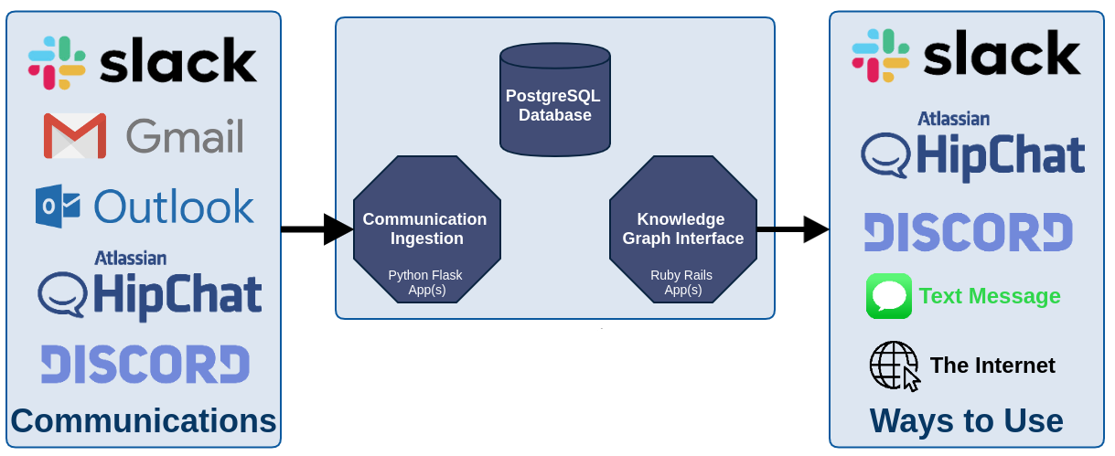 We try to keep everything simple. That's why our setup uses three of the most well-known applications/frameworks: Ruby on Rails, Python Flask, and PostgreSQL. All of which are available at nearly every enterprise.